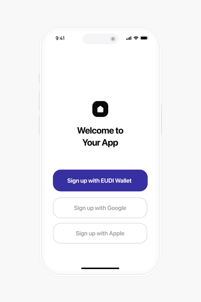 User chooses to sign up or log in using their EUDI Wallet.