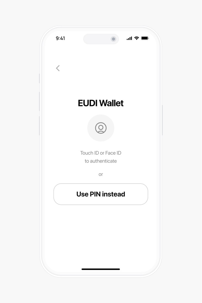 User opens their EUDI Wallet and authenticates with biometrics or PIN.