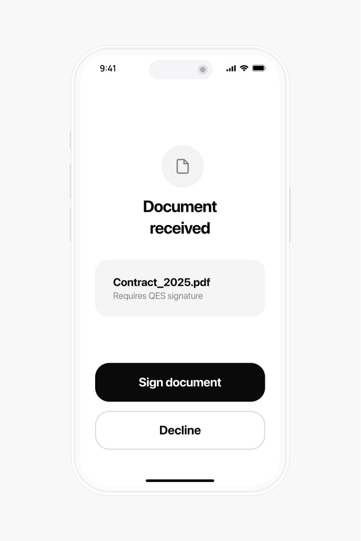 User receives a document that requires a QES.
